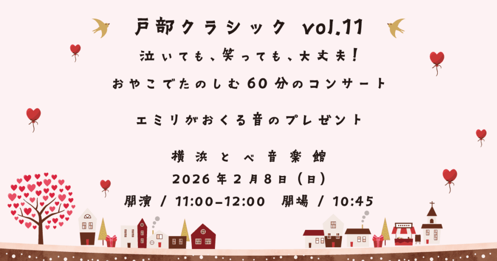 戸部クラシックvol.11 泣いても、笑っても、大丈夫!おやこでたのしむ60分のコンサート エミリがおくる音のプレゼント